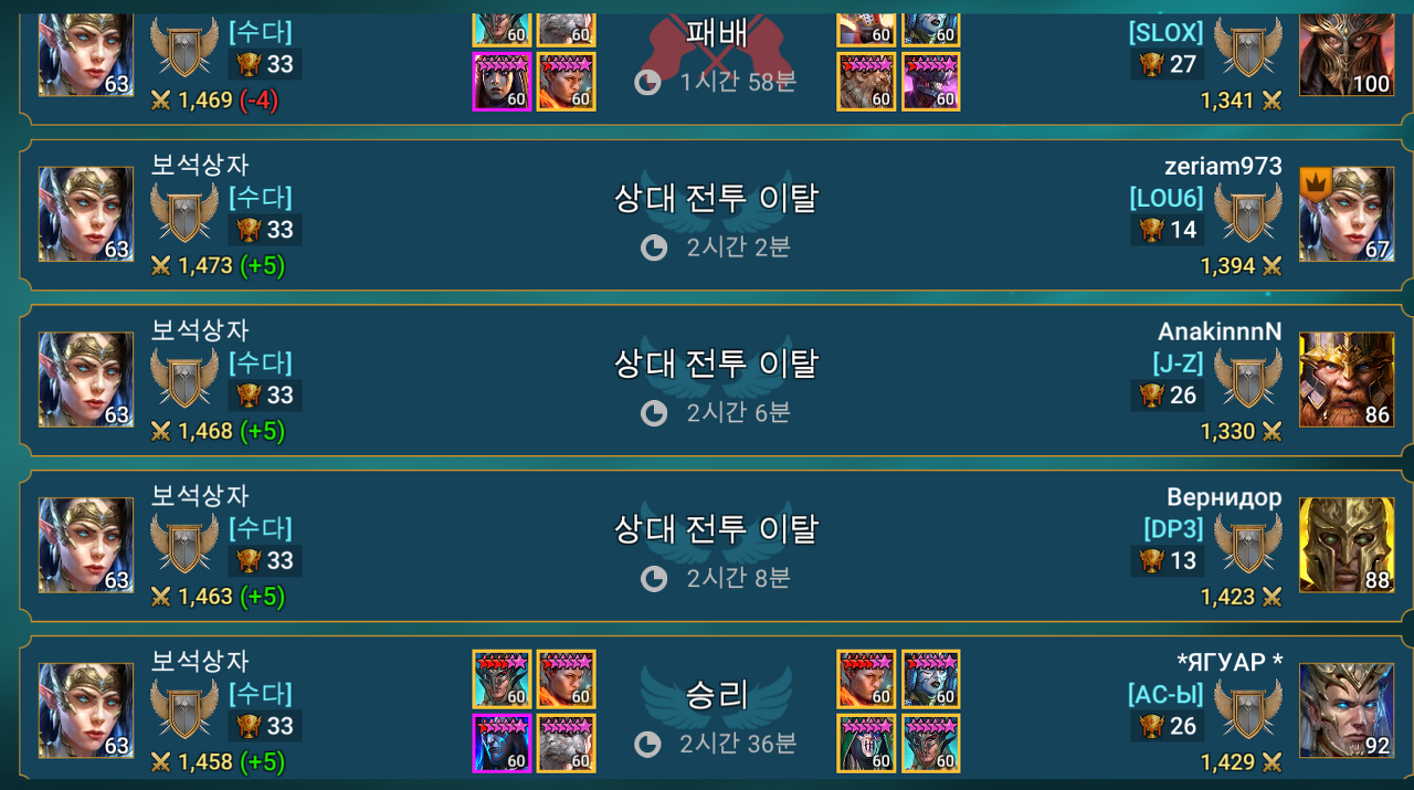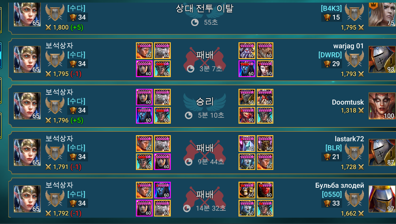 하지만, 매일 전투결과를 보면 저렙인 제가 오히려 평균적으로 더 많이 고렙들을 이기고