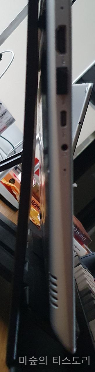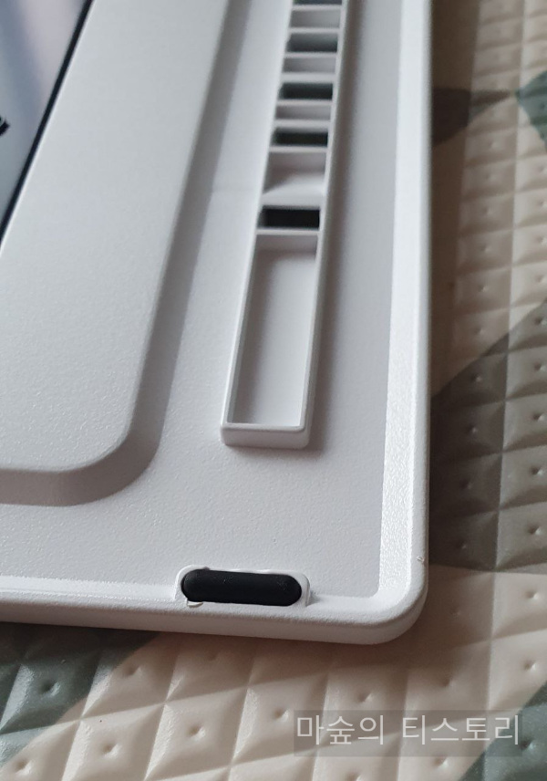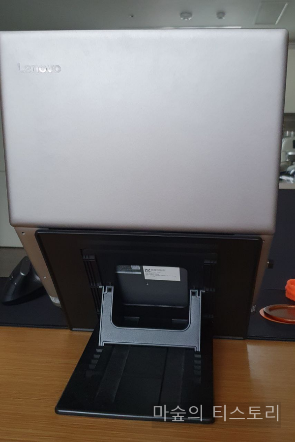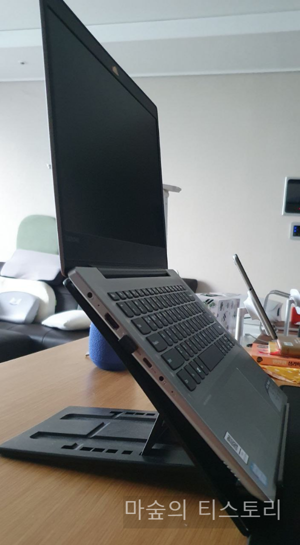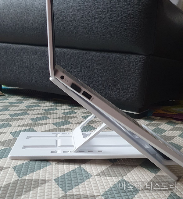 측면을 보면 지지 널빤지랑 노트북 뒷면이 서로 떨어져있는 것을 볼 수가 있다.