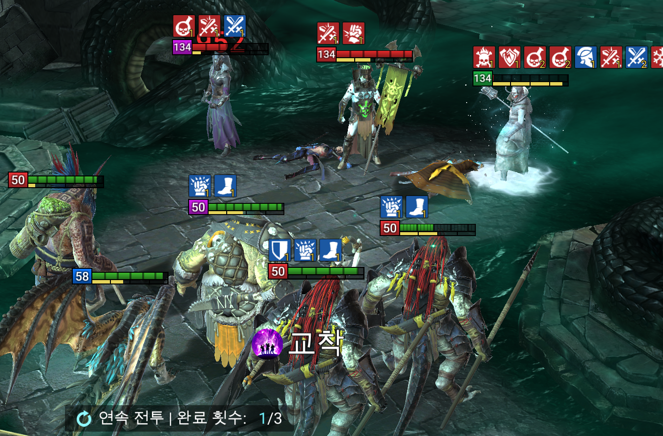 여러 캐릭터들의 속도와 마법을 조합하여 전투를 벌여야