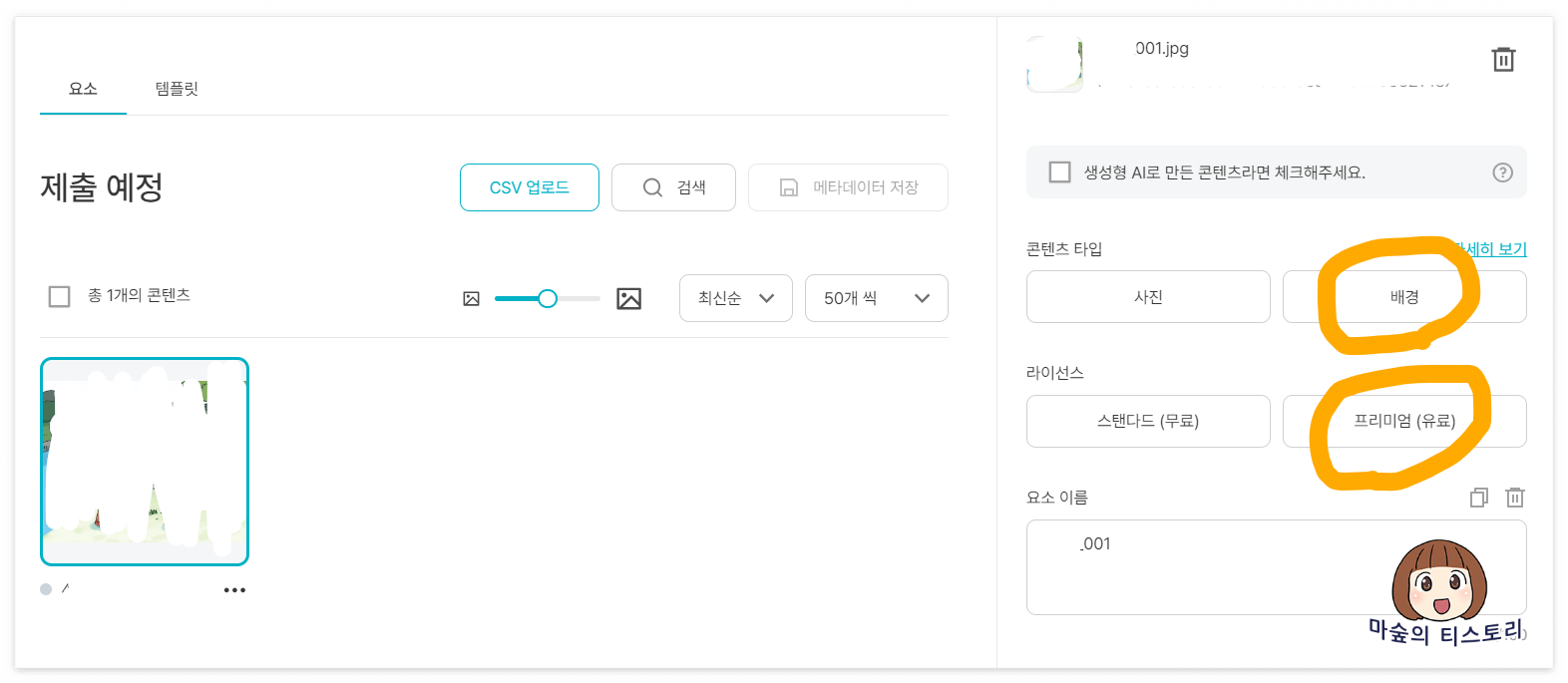그림 콘텐츠이니 무조건 '배경' 을 선택합니다.