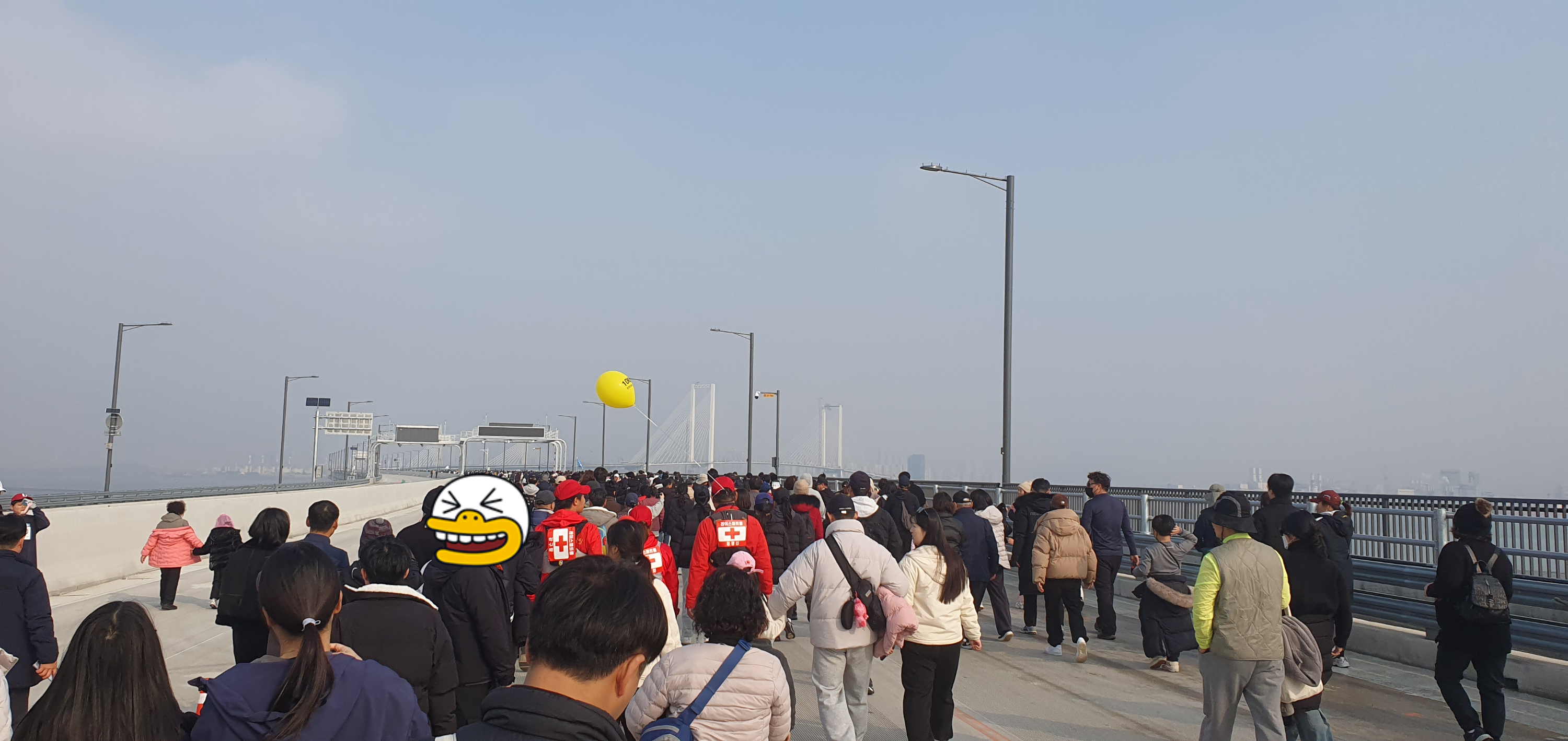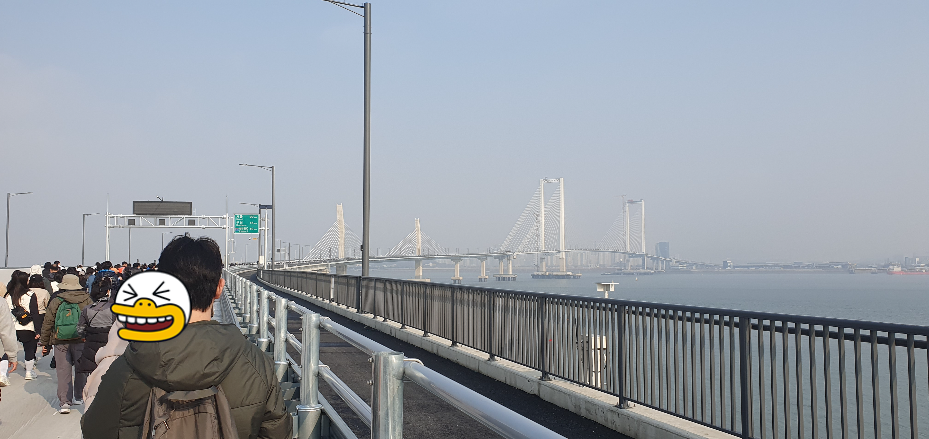 도착 후 생수 2병, 메달, 얼굴 마스크, 빵 1개를 지급받았고, 별다른 사고 없이 즐거운 하루를 마쳤습니다. 세계 최고 높이 해상 전망대가 있는 이 교량의 개통(2026년 1월 예정)이 기대되며, 앞으로 레저 명소로 자리 잡을 즐거운 행사였습니다.